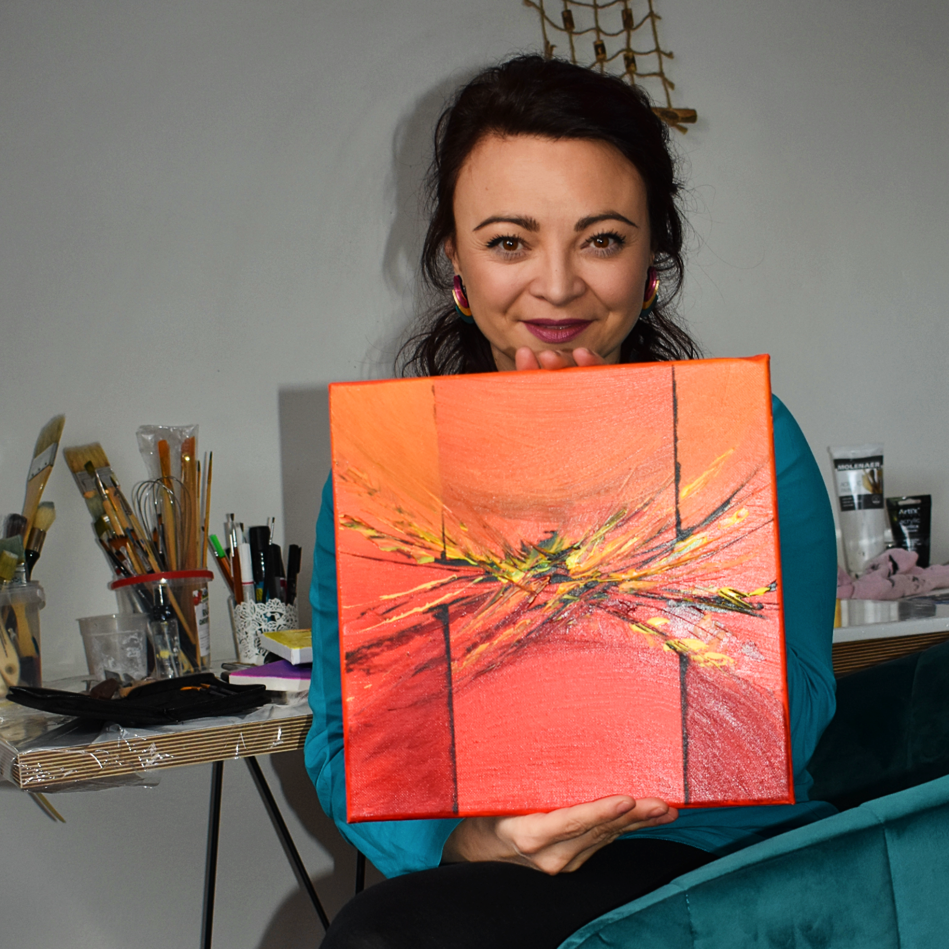 Své abstrakty záměrně nepojmenovávám, dávám tak prostor fantazii jejich novým majitelům. Ať si je pojmenují přesně podle sebe, ať si je otočí a pověsí dle vlastního pocitu a vnímání. Aby se při pohledu na obraz cítili příjemně, aby jim vyprávěl jejich příběh.