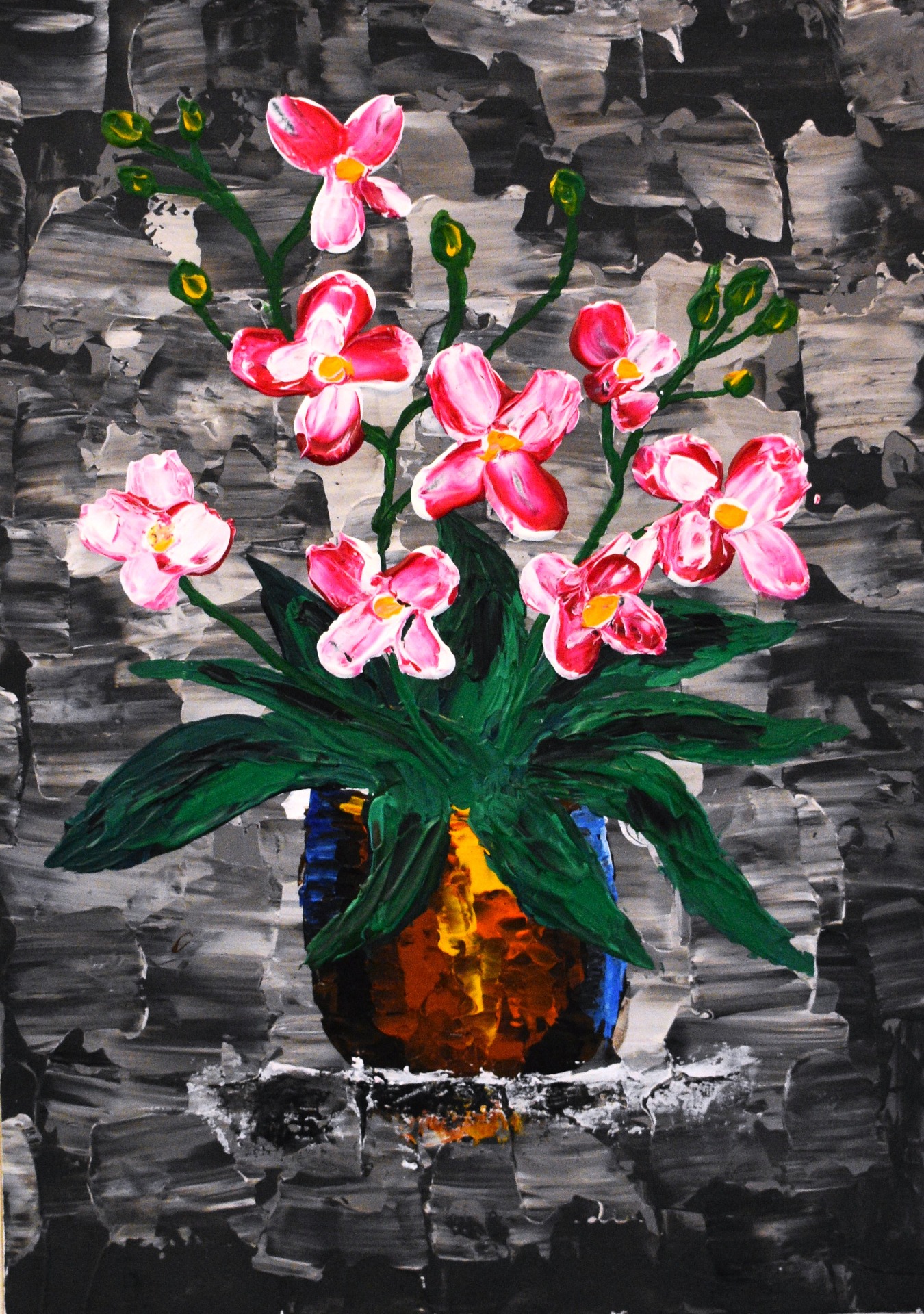 Zaměřuji se zejména na přírodu v různých podobách a variacích. Nechybí pestrobarevnost a kontrast. Malování těchto obrazů mi přináší klid v mysli. Kontrast barev naopak vnitřně rozzáří a pohladí duši.
